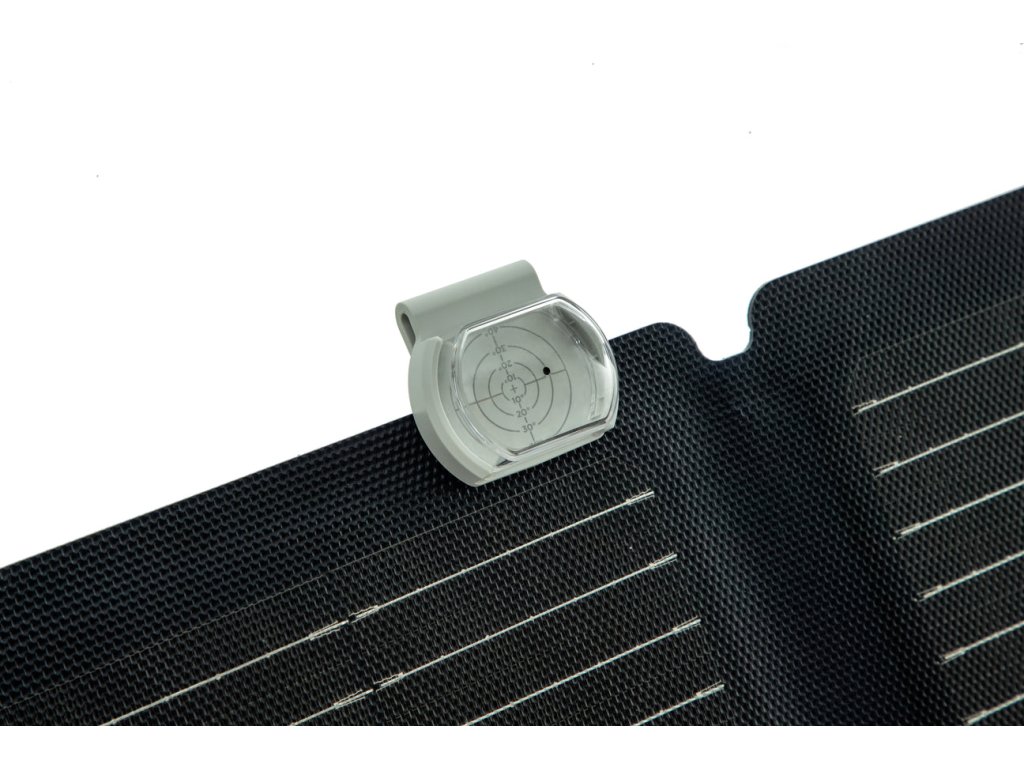Připněte k okraji solárního panelu. Dále zarovnejte solární panel se slunečními paprsky pomocí stínu. Po zarovnání můžete začít.