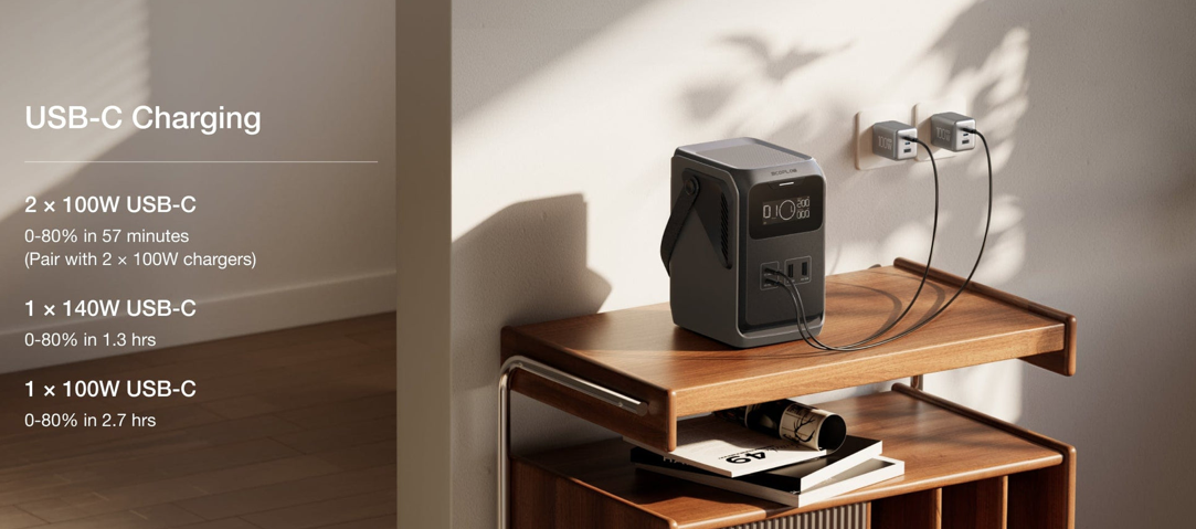 Čistý stejnosměrný (DC) výkon poskytuje celkový výstup 220 W (až 140 W na jeden port), co je dostatečné pro 90 % základního outdoorového vybavení. Ideální volba pro mobily, fotoaparáty, drony nebo jinou drobnou elektroniku.